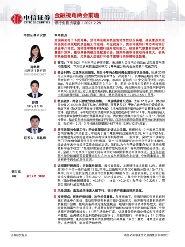 【中信证券】【20210228】银行业投资观察:金融视角两会前瞻-11页 行业研究