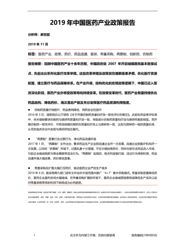 【头豹研究院】【201911】2019年中国医药产业政策报告-38页 行业研究