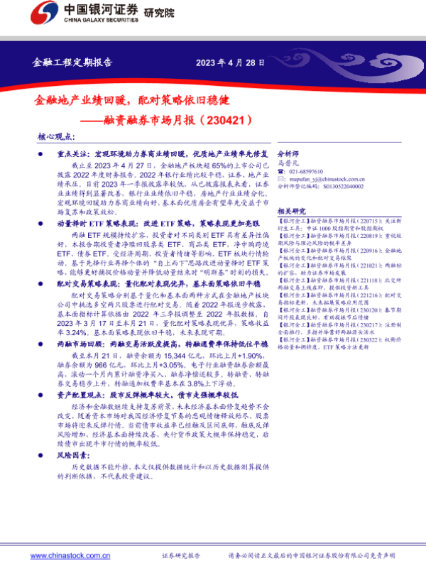 【银河证券】【20230428】融资融券市场月报:金融地产业绩回暖,配对策略依旧稳健-20页 行业研究