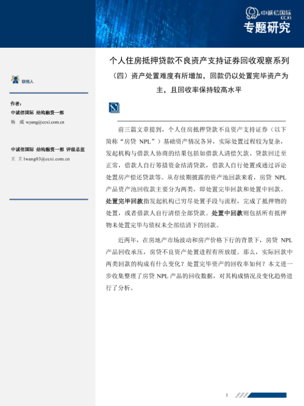 【中诚信国际】【20250211】个人住房抵押贷款不良资产支持证券回收观察系列(四)-7页 行业研究