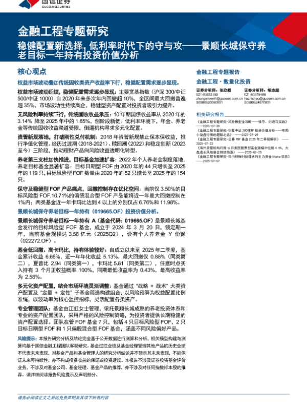 【国信证券】【202508】稳健配置新选择,低利率时代下的守与攻——景顺长城保守养老目标一年持有投资价值分析-20页 证券期货研究报告