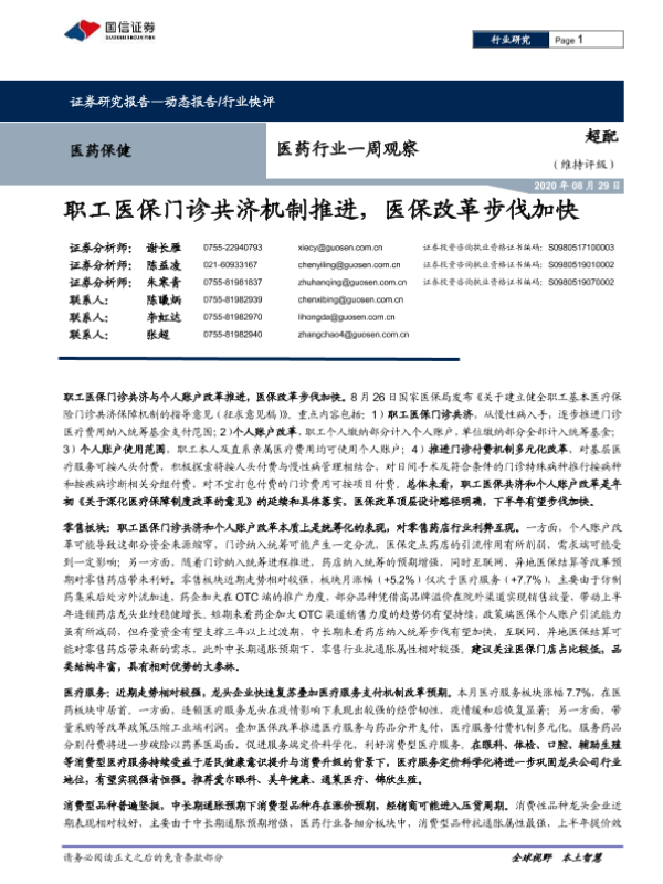 【国信证券】【20200829】职工医保门诊共济机制推进,医保改革步伐加快-13页 行业研究