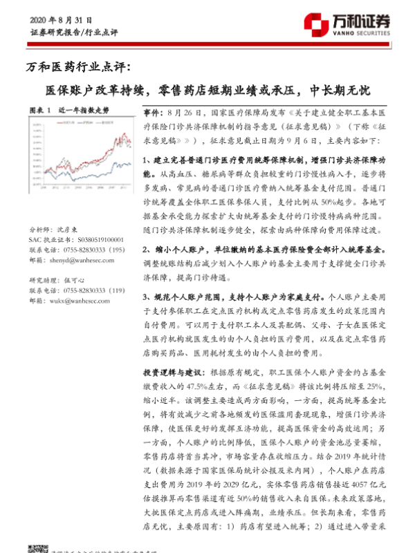 【万和证券】【20200831】万和医药行业点评:医保账户改革持续,零售药店短期业绩或承压,中长期无忧-3页 行业研究