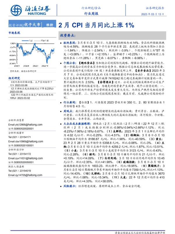 【海通证券】【20230313】20230313-海通证券-食品行业周报:2月CPI当月同比上涨1%-17页 行业研究