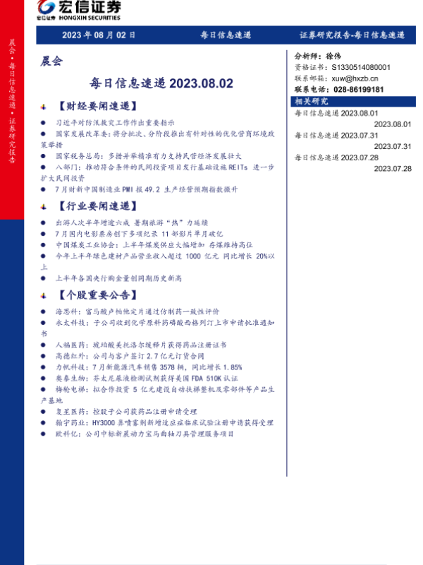 【宏信证券】【20230802】20230802-宏信证券-每日信息速递-8页 行业研究