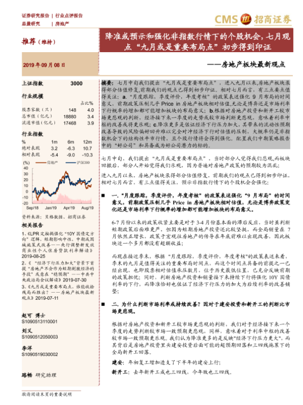 【海通证券】【20190908】房地产板块最新观点:降准或预示和强化非指数行情下的个股机会,七月观点“九月或是重要布局点”初步得到印证-3页 行业研究