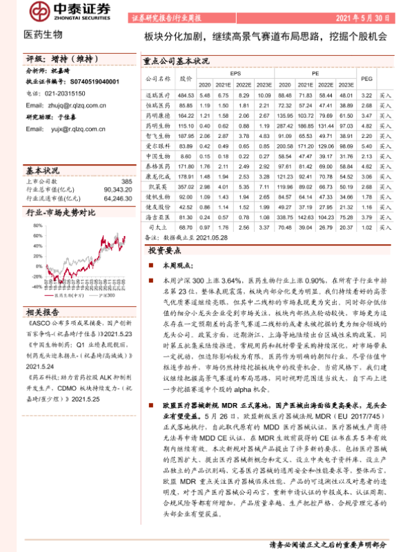 【中泰证券】【20210530】医药生物板块行业周报:块分化加剧,继续高景气赛道布局思路,挖掘个股机会-11页 行业研究