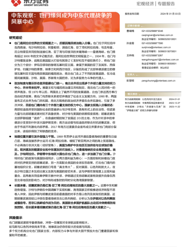 【东方证券】【20240103】中东观察:也门缘何成为中东代理战争的风暴中心-18页 行业研究