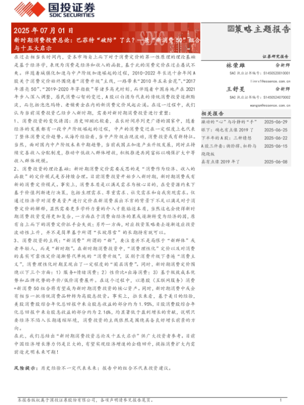 【国投证券】【20250701】新时期消费投资总论:巴菲特“破防”了么?—兼“新消费50”组合与十五大启示-95页 证券期货研究报告