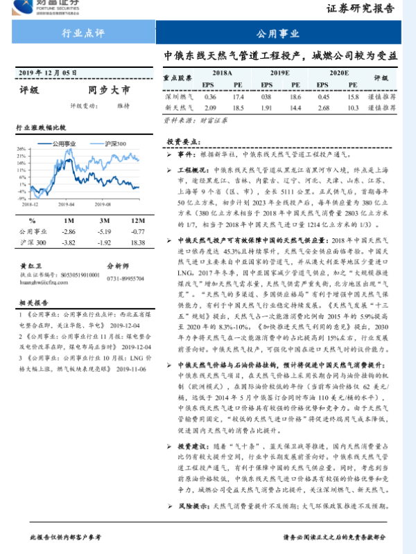 【财信证券】【20191205】公用事业行业点评:中俄东线天然气管道工程投产,城燃公司较为受益-2页 行业研究