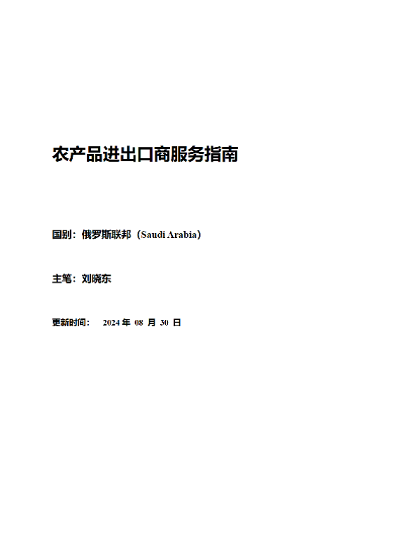 【刘晓东】【202408】俄罗斯联邦农产品进出口商服务指南-174页 指南