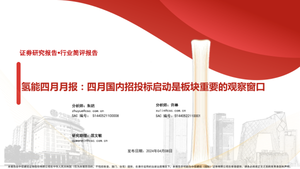 【中信建投证券】【20240408】氢能行业四月月报:四月国内招投标启动是板块重要的观察窗口-17页 行业研究