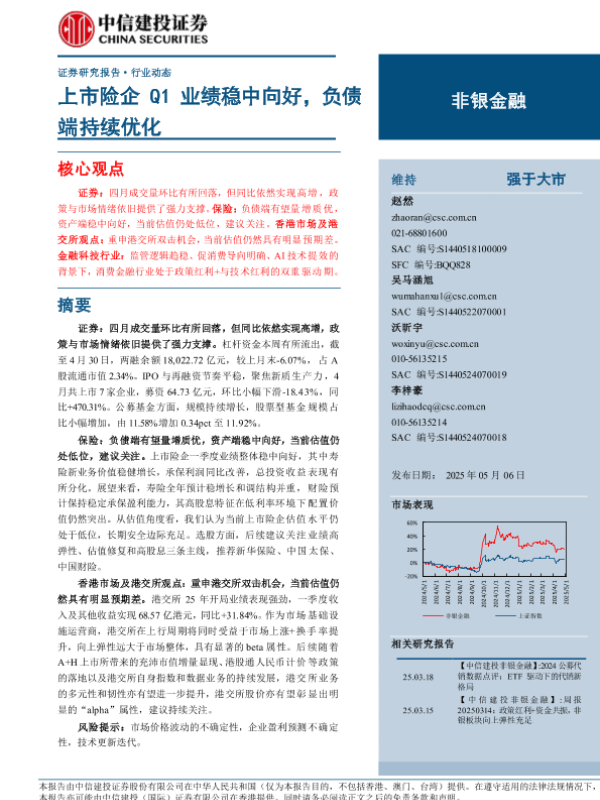【中信建投证券】【20250506】非银金融行业:上市险企Q1业绩稳中向好,负债端持续优化-29页 行业研究