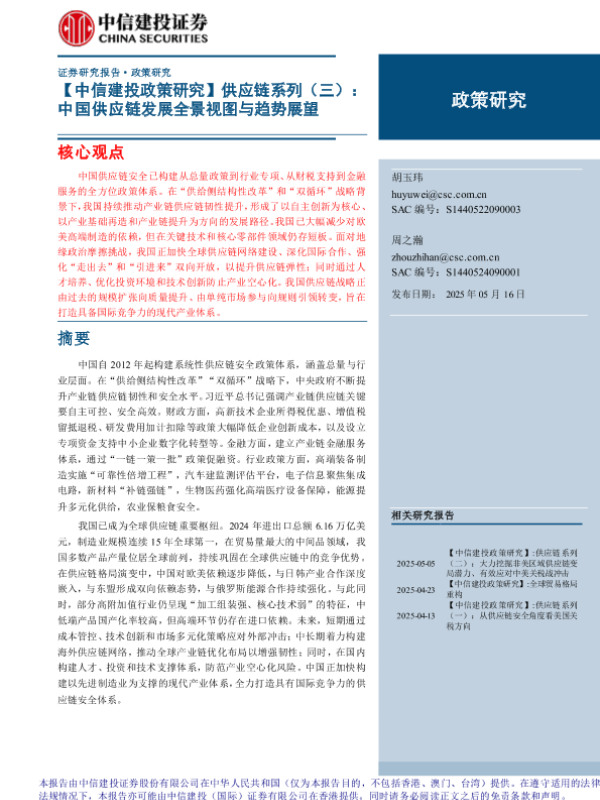 【中信建投证券】【20250516】供应链系列(三):中国供应链发展全景视图与趋势展望-22页 证券期货研究报告