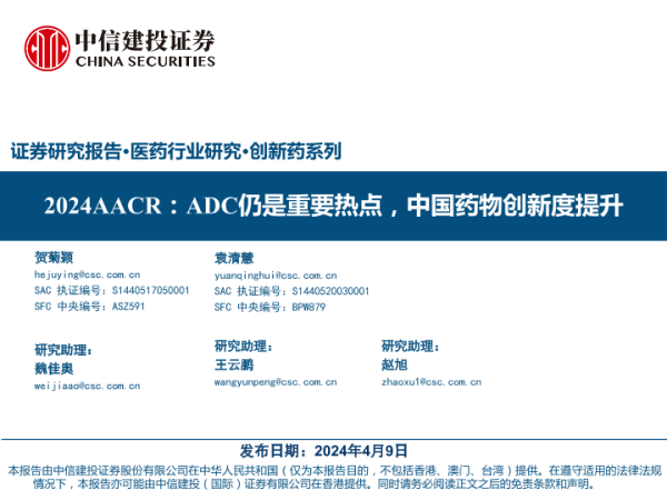 【中信建投证券】【20240409】医药行业2024AACR:ADC仍是重要热点,中国药物创新度提升-53页 行业研究