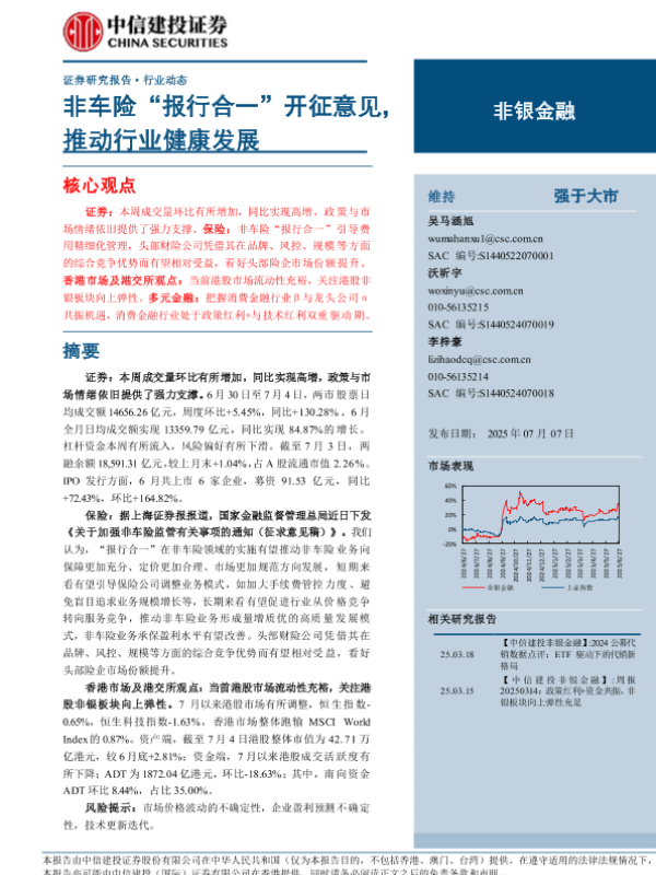 【中信建投证券】【20250707】非银金融行业:非车险“报行合一”开征意见,推动行业健康发展-28页 行业研究