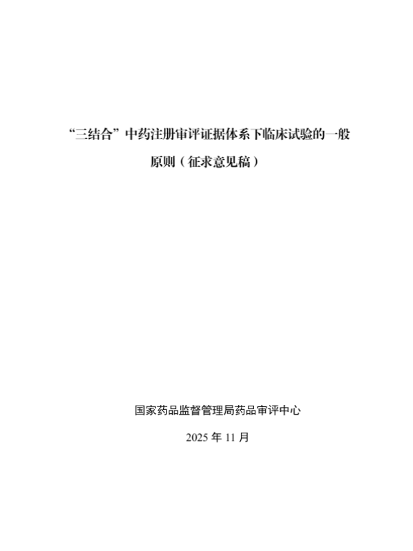 【国家药品监督管理局药品审评中心】【202511】“三结合”中药注册审评证据体系下临床试验的一般原则(征求意见稿)-11页 指南