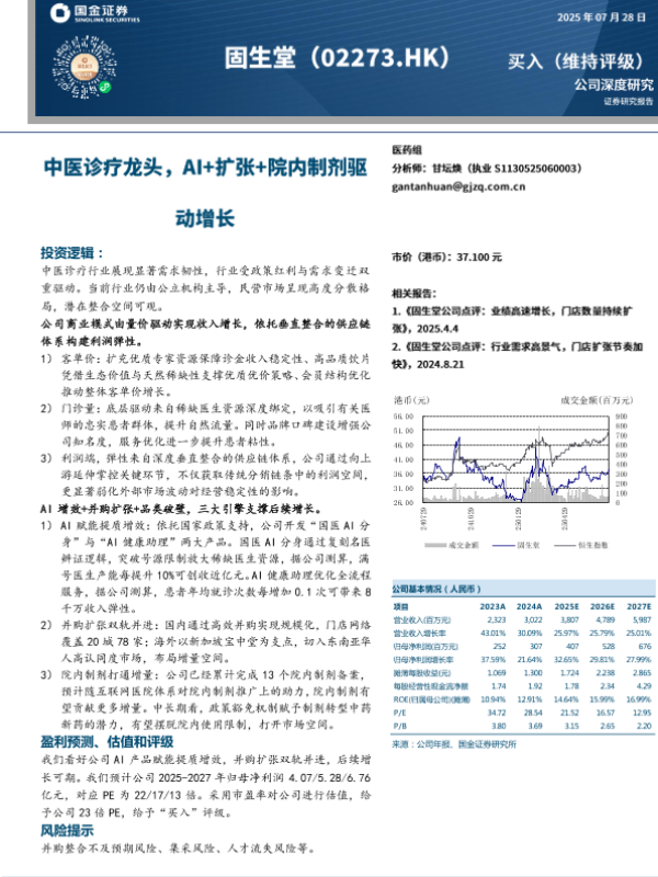 【国金证券】【202507】中医诊疗龙头,Al+扩张+院内制剂驱动增长-25页 证券期货研究报告