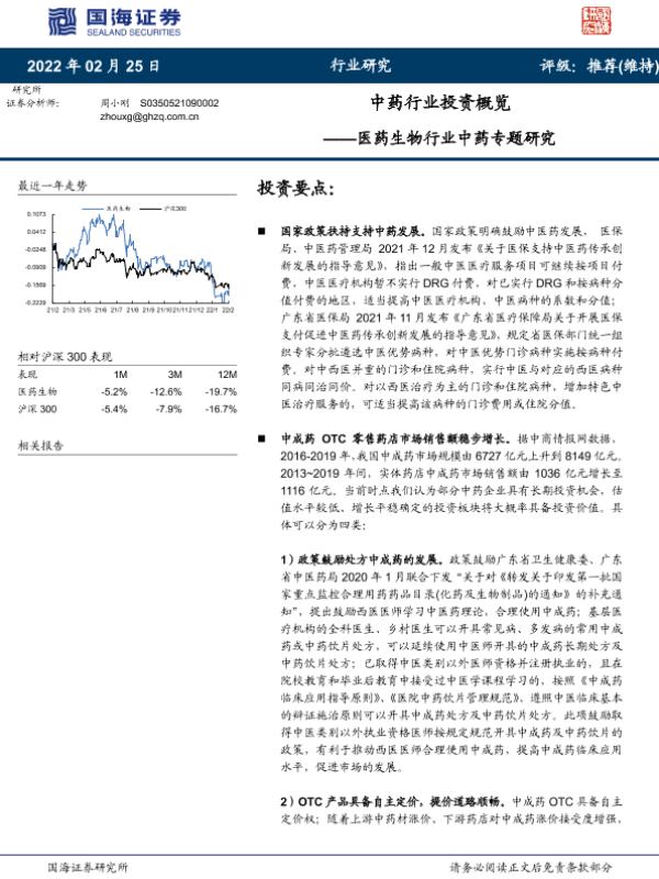 【国海证券】【20220225】中药行业投资概览-5页 行业研究