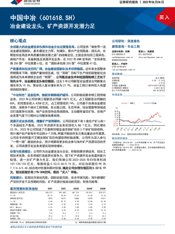 【国信证券】【20230606】中国中冶-601618.SH-冶金建设龙头,矿产资源开发潜力足-31页 行业研究