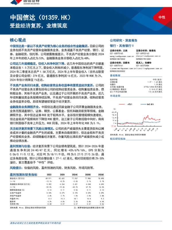 【国信证券】【20250220】中国信达(01359.HK)受益经济复苏,业绩筑底-30页 行业研究