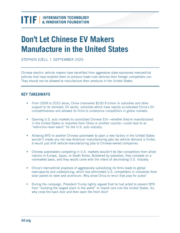 【ITIF】【202509】Don’t Let Chinese EV Makers Manufacture in the United States-18页 行业研究