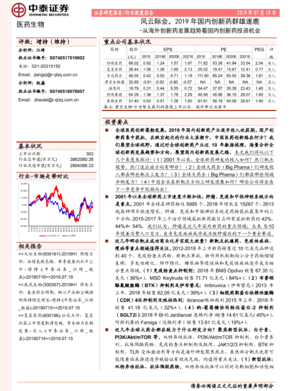 【中泰证券】【20190719】从海外创新药发展趋势看国内创新药投资机会-27页 行业研究