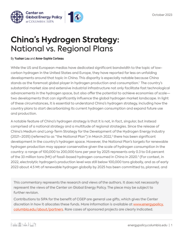 【Yushan Lou和Anne-Sophie Corbeau】【2023】中国的氢能战略:国家与地区规划-33页 行业研究
