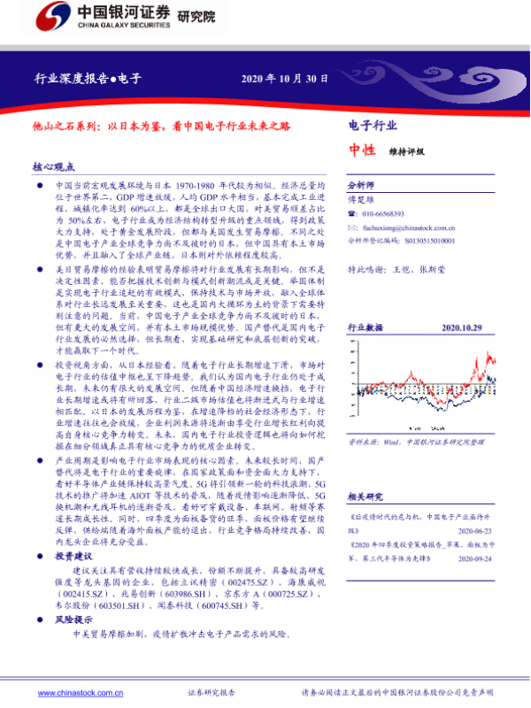 【银河证券】【20201030】他山之石系列:以日本为鉴,看中国电子行业未来之路-36页 行业研究