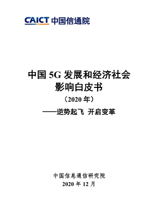 【中国信息通信研究院】【202012】中国5G发展和经济社会影响白皮书(2020年)——逆势起飞开启变革-46页 白皮书