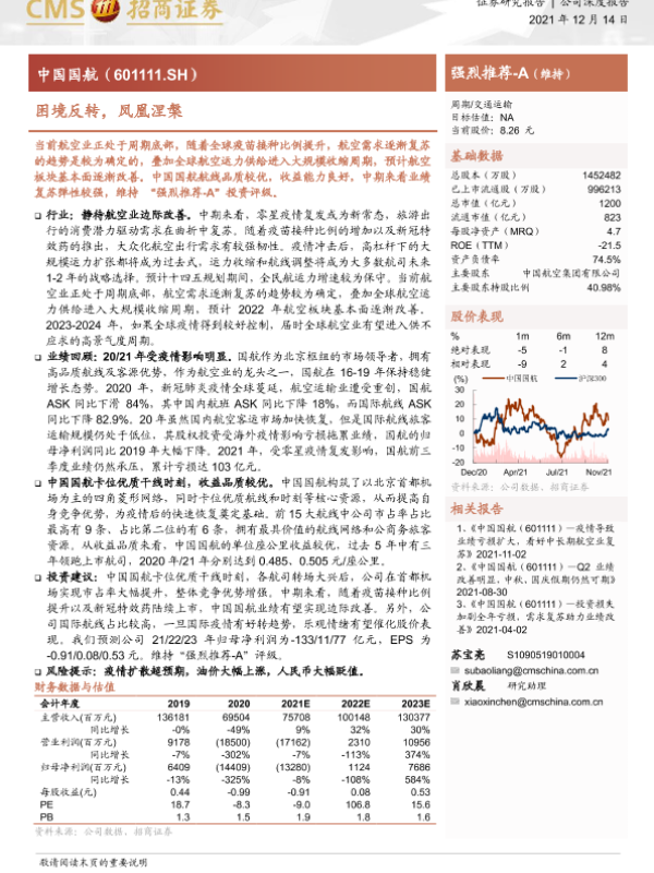 【海通证券】【20211214】中国国航-601111.SH-困境反转,凤凰涅槃-19页 证券期货研究报告