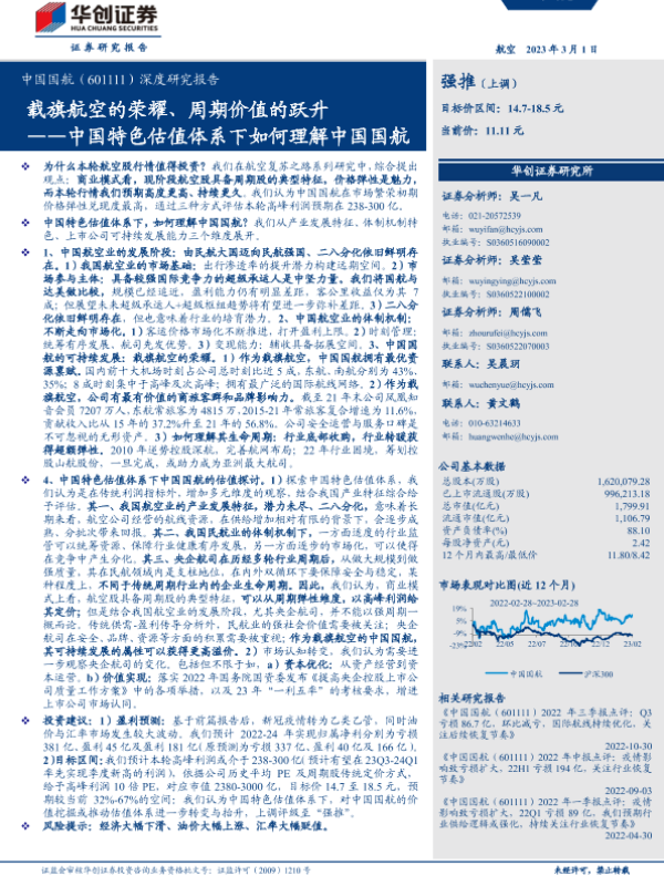 【华创证券】【20230301】深度研究报告:载旗航空的荣耀、周期价值的跃升——中国特色估值体系下如何理解中国国航-53页 行业研究