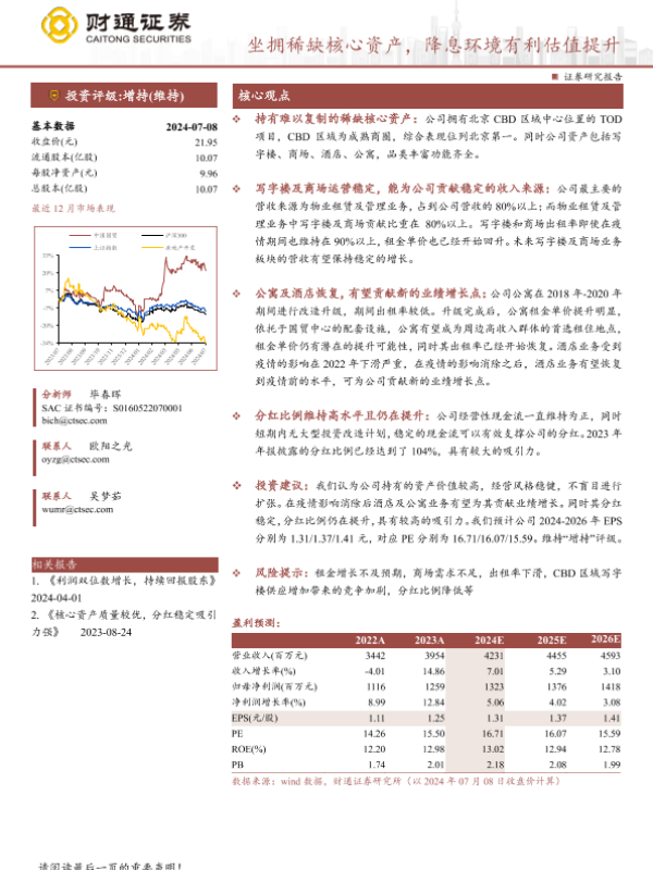 【财通证券】【20240709】中国国贸(600007)坐拥稀缺核心资产,降息环境有利估值提升-29页 行业研究