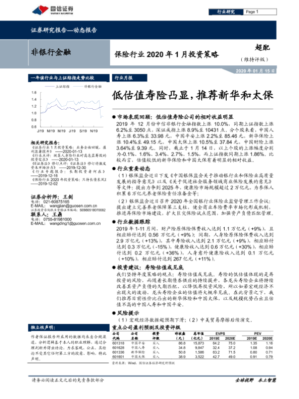 【国信证券】【20200115】保险行业2020年1月投资策略:低估值寿险凸显-5页 行业研究