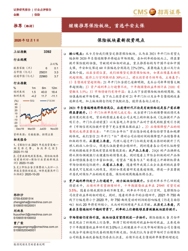 【海通证券】【20201201】保险板块最新投资观点:继续推荐保险板块,首选平安太保-3页 行业研究