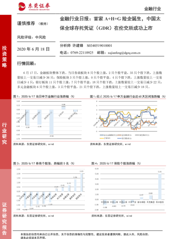 【东莞证券】【20200618】金融行业日报:首家A+H+G险企诞生,中国太保全球存托凭证(GDR)在伦交所成功上市-4页 行业研究