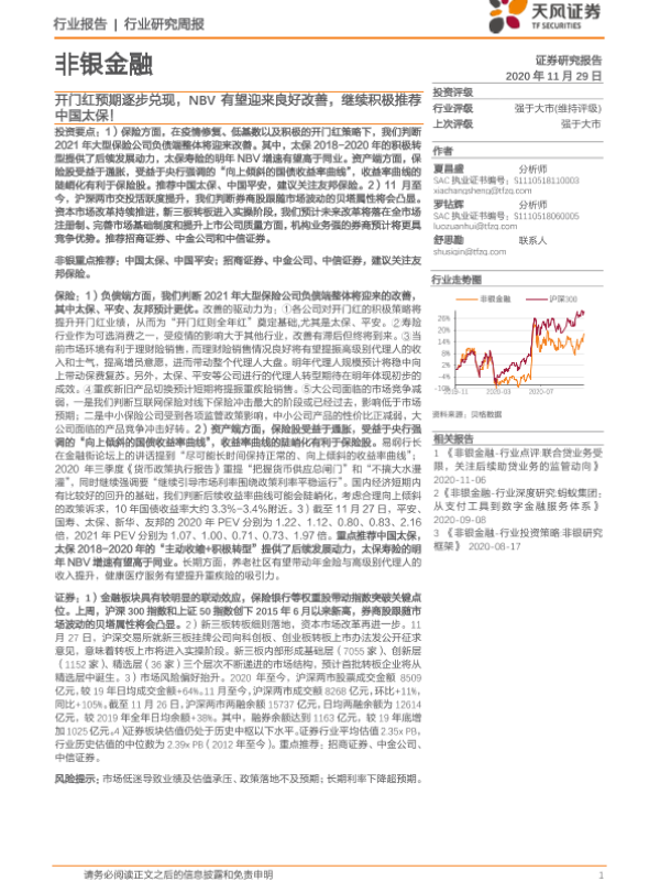 【天风证券】【20201129】非银金融行业研究周报:开门红预期逐步兑现,NBV有望迎来良好改善-8页 行业研究