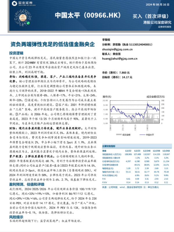 【国金证券】【20240816】中国太平(00966.HK)资负两端弹性充足的低估值金融央企-27页 行业研究