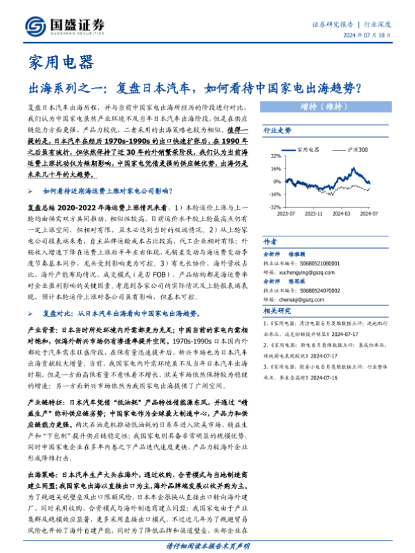 【国盛证券】【20240718】出海系列之一:复盘日本汽车,如何看待中国家电出海趋势?-31页 行业研究