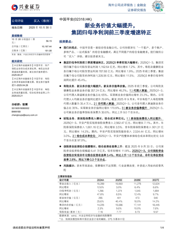 【兴业证券】【202510】海外公司点评报告|中国平安-4页 证券期货研究报告