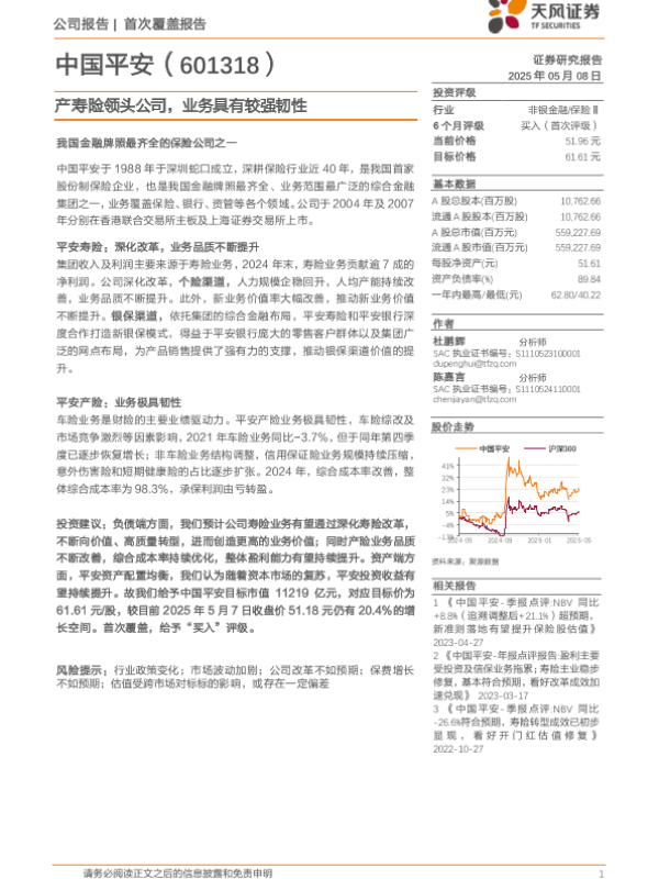 【天风证券】【20250508】中国平安-601318.SH-产寿险领头公司,业务具有较强韧性-21页 公司研究