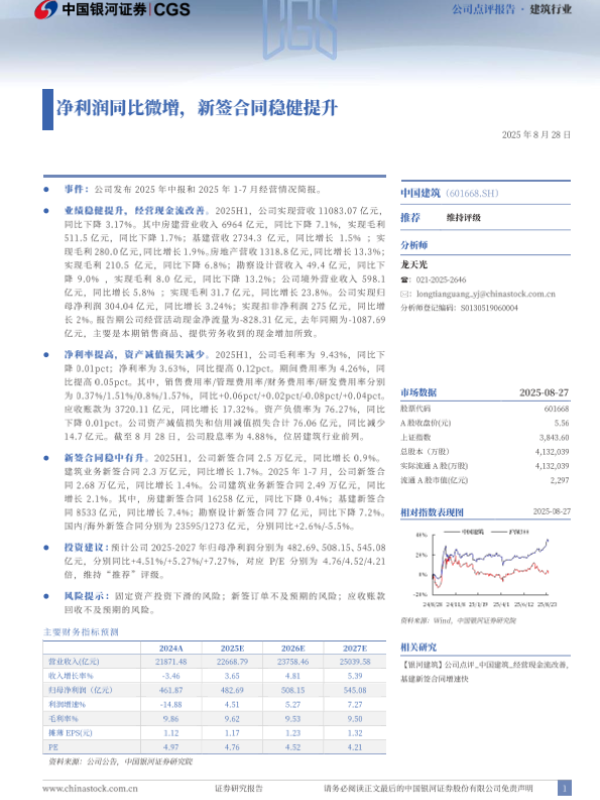 【银河证券】【20250828】中国建筑-净利润同比微增_新签合同稳健提升-3页 证券期货研究报告
