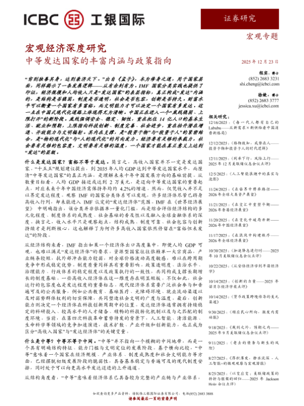 【工银国际证券有限公司】【202512】中等发达国家的丰富内涵与政策指向-5页 证券期货研究报告