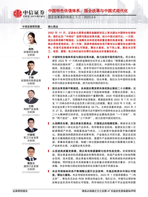 【中信证券】【20230404】国企改革系列报告之十三:中国特色估值体系、国企改革与中国式现代化-48页 行业研究