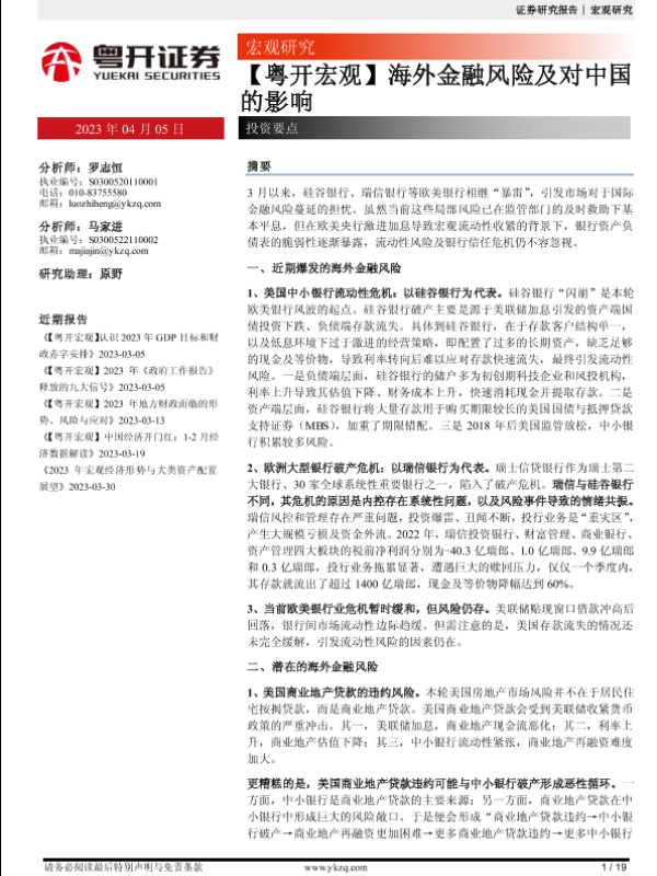 【粤开证券】【20230405】【粤开宏观】海外金融风险及对中国的影响-19页 行业研究