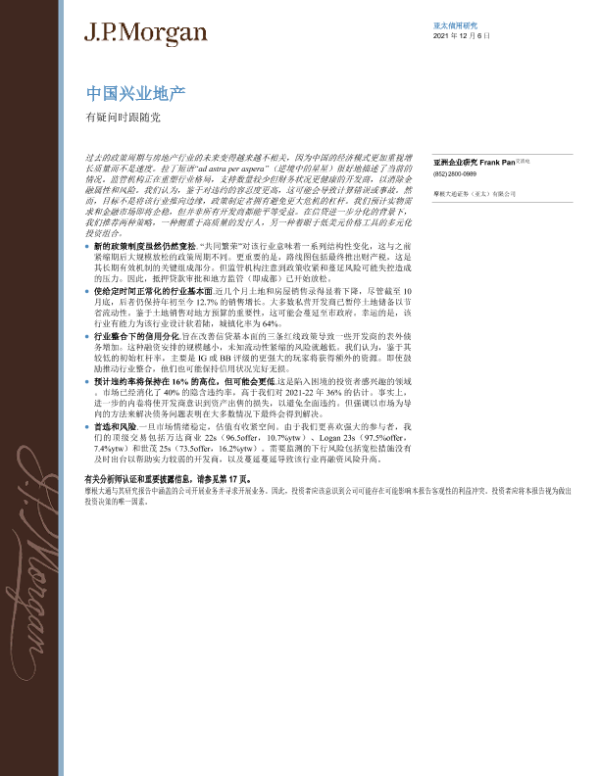 【J.P. Morgan】【20211206】亚太地区投资策略中国HY房地产:有疑问的时候就跟着政策走-22页 行业研究