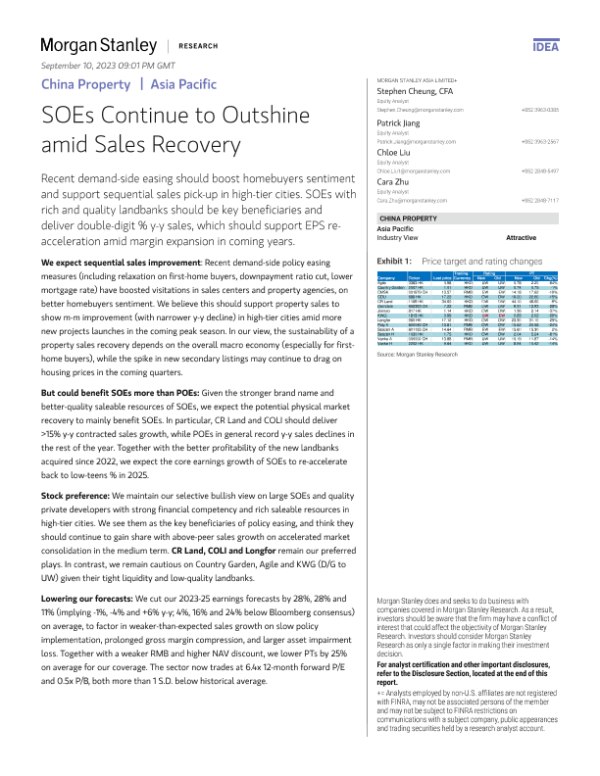 【Morgan Stanley】【2023】China Property SOEs Continue to Outshine amid Sales Recovery-65页 行业研究