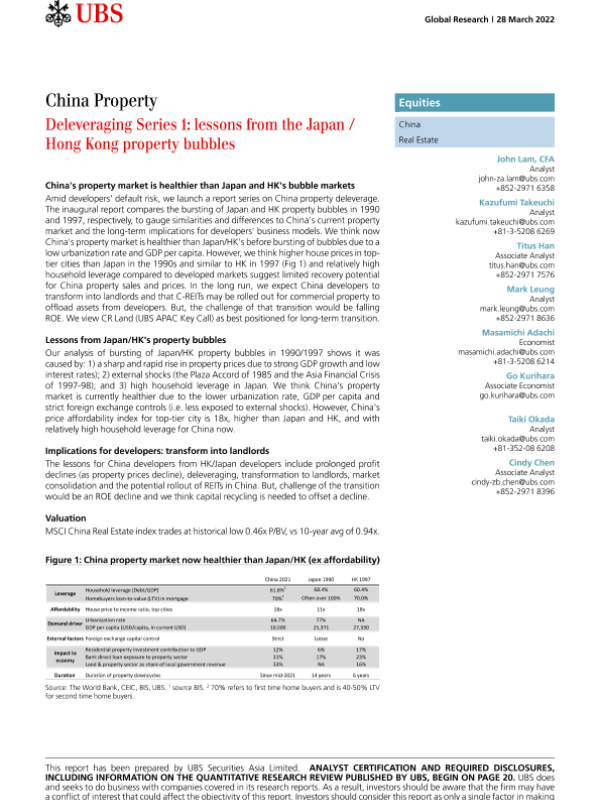 【瑞银】【20220328】瑞银-中国房地产行业-去杠杆化系列1:日本、中国香港房地产泡沫的教训-27页 行业研究