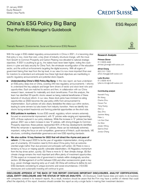【瑞信】【20220121】中国的ESG政策大爆炸:投资组合经理指南-59页 行业研究