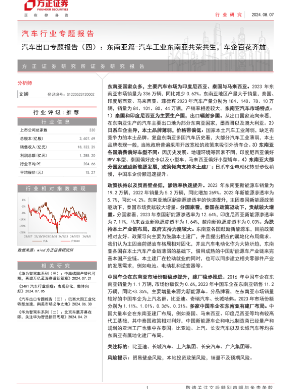 【国海证券】【20240731】汽车行业深度报告-汽车出海系列-东南亚汽车市场展望:乘新能源之势,展中国车之翅-62页 行业研究
